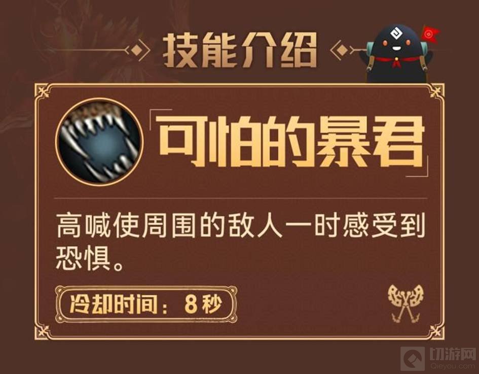 3、下面这个技能是狂战士的主要辅助技能,释放后可以恐惧或者嘲讽敌人并且保持霸体状态。不论是聚怪还是控制都十分的好用。其他技能按照需要加就行了,主要加提到的这两个技能。