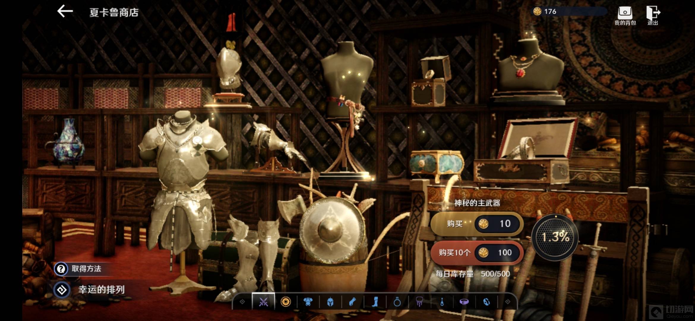 5、最后一点就是装备了。在装备的选择上自然是装备高等级的更好,但是因为黑色沙漠游戏的特点,装备这一块一定要用古代金币在夏卡鲁商店抽取主武器!这个抽取同一种装备次数越多,那么出高等级装备的概率就越高,而好的装备直接影响到战斗力,所以一定要抽取主武器!
