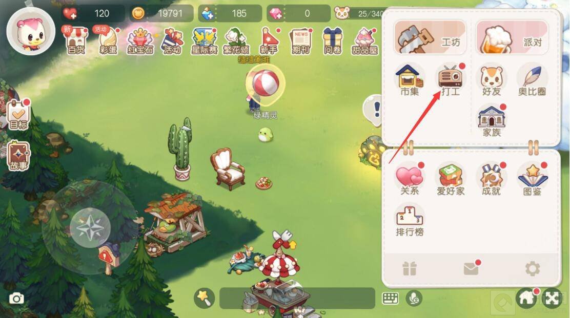 4.再点击拿着“打工”小红旗的精灵开始打工。