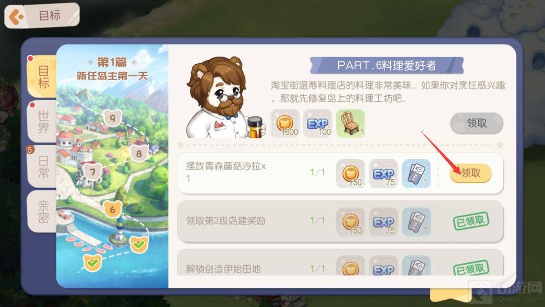 3.做完任务后回到界面点击“领取”。