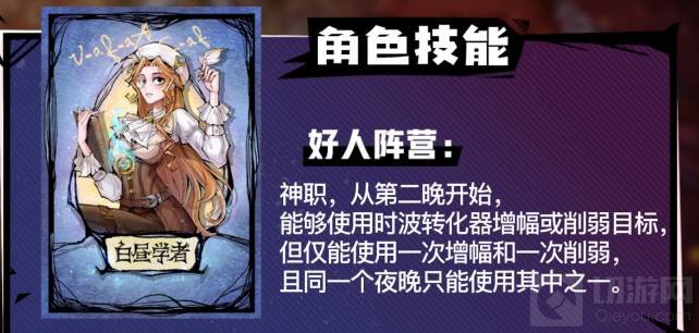 3、除了增幅和削弱的效果之外,白昼学者和寂夜导师的技能还存在无效化的特殊情况,当好人阵营的一名玩家同时成为白昼学者和寂夜导师的技能目标时,俩人的技能都会失效,并且该玩家出局,这对于好人阵营来说,是得不偿失。
