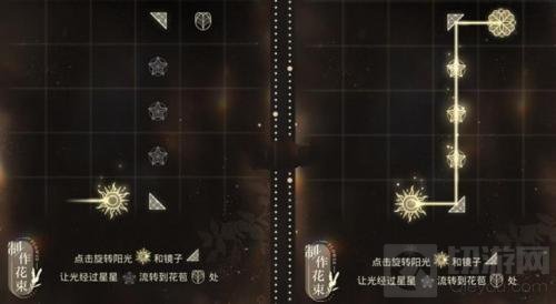 2、调整太阳光束的发射方向及镜面的朝向,让阳光点亮星星并流转至花苞处即可通关。