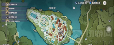 2、打开地图后找到蒙德城,再找到距离钻石图标最近的传送点进行传送。