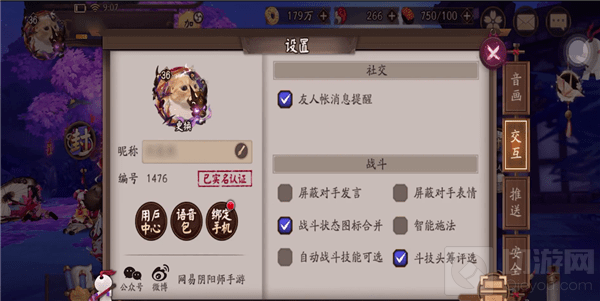 1.首先在游戏主界面找到自己的小头像,点击打开。将右边选项调节为第二项交互,选择勾选智能施法丶自动战斗技能勾选这二个选项就把基础设置设置好了。
