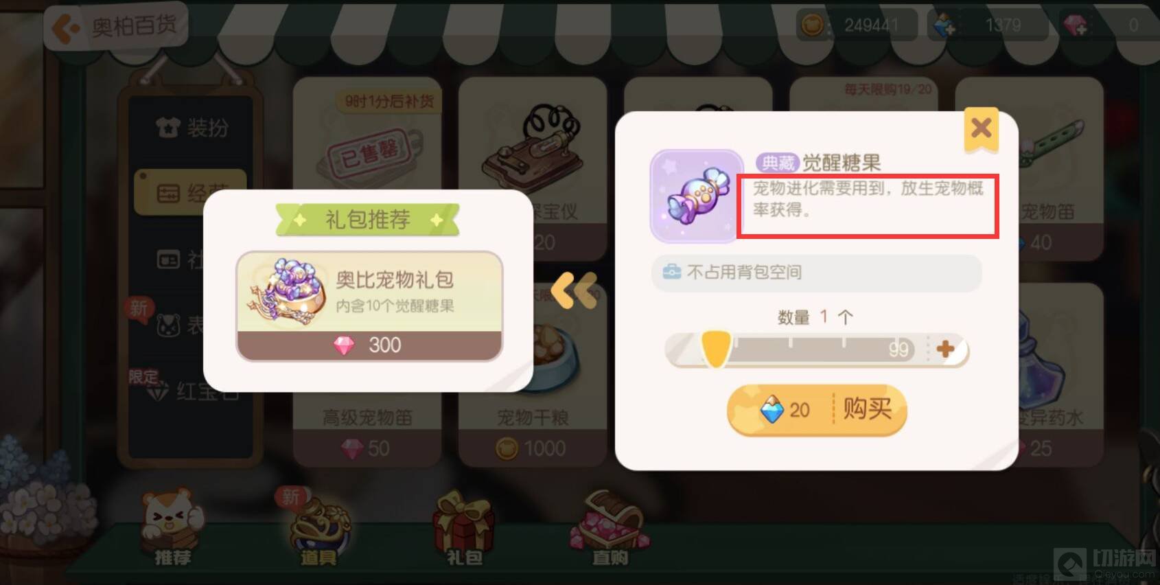觉醒糖果获取方法有两种,第一种的通过奥柏百货购买,需要花费20晶钻购买觉醒糖果。