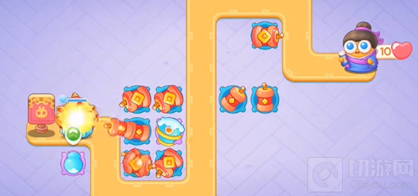 2、将默认的炮仗塔升级到满级,对准上半部分的壶打。