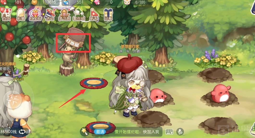 5、就可以看到打地鼠了,最后进入箭头所示的位置即可参与。