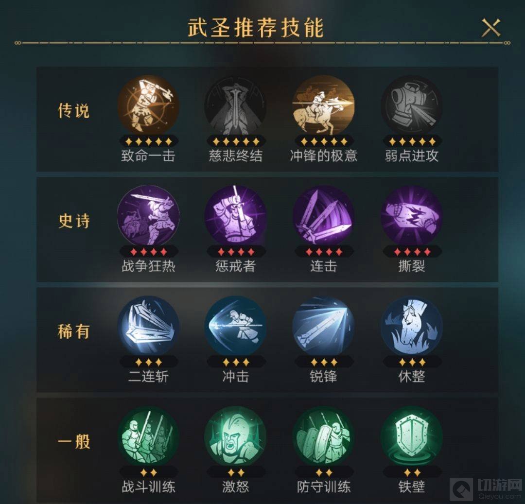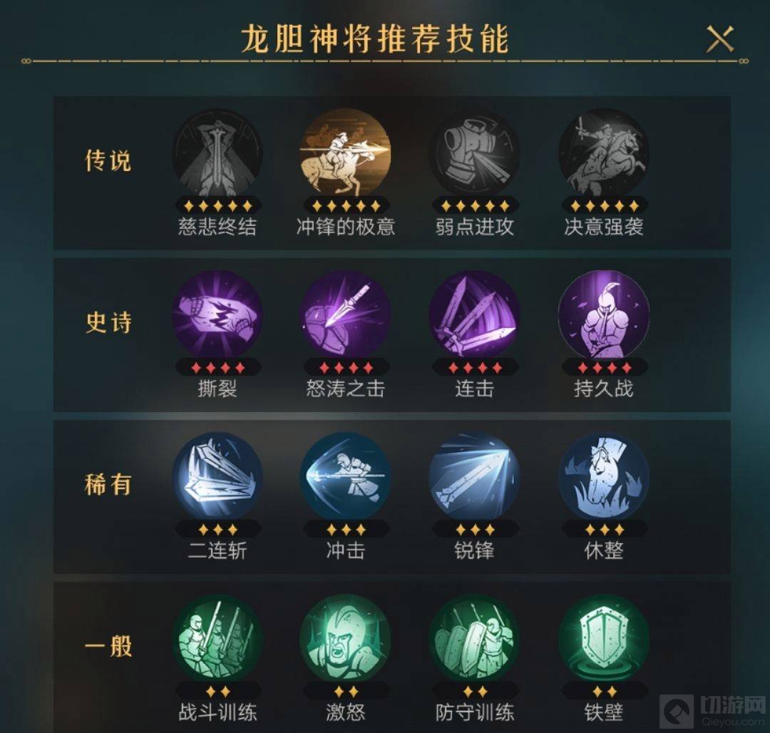 3、龙胆神将:怒涛之击>撕裂>破怒斩>连击>持久战