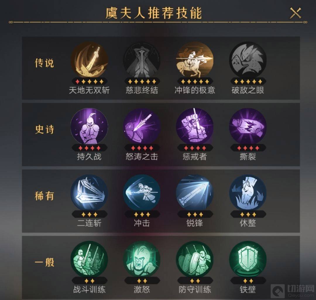 4、虞夫人:持久战>丰收祝福>钢铁之躯>撕裂>惩戒者