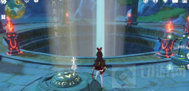 1首先在秘境口可以看到六个火元素柱子,而遗迹文字提示“循长存者之迹,叩秘宝之门”。