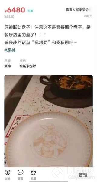 在某二手交易网站上,还出现了疑似“钓鱼”的帖子,有人把联动店里的餐盘标上了6480的价格出售,还特意地写了这个是餐厅店里的盘子,感兴趣的话可以私聊出售,一度让人开始怀疑该事件的真实性。