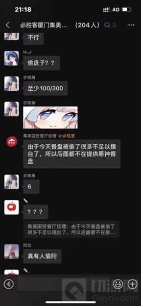 近日,在玩家群里疯传起了,有人在厦门必胜客店里疯狂偷盘子,导致门店管理者吐槽:“由于今天餐盘被偷了很多不足以摆台了,所以后面都不在提供原神餐盘”,让黑粉又双叒一次抓住了机会怒喷了原神玩家的低素质。