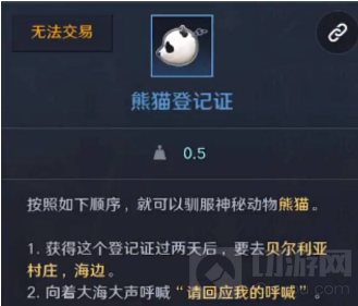 3.然后打开兽人宝盒可得到熊猫登记证按照提示信息。