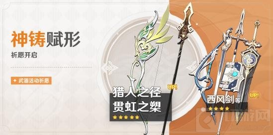 除此之外,神铸赋形祈愿也已开启。限定五星武器「弓·猎人之径」、「长柄武器·贯虹之槊」将迎来概率UP。
