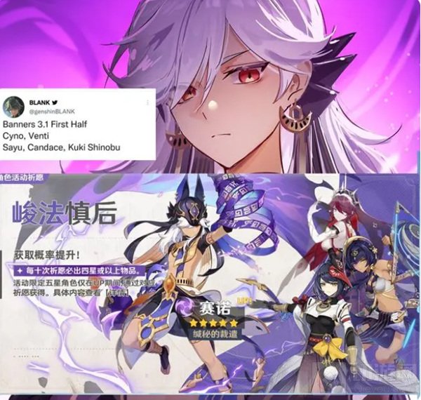 各位旅行者们大家好呀,一起来看看今天都有哪些好消息吧,3.1版本即将开启,外网大佬blank也是放出了上半卡池角色,分别是赛诺温迪早柚坎蒂丝久岐忍,不得不说真是好棒的池,没想到小忍这么快就复刻了~早柚也是很多玩家的低命,这次大家终于是可以补忍和早柚命座了,坎蒂丝又作为新角色,两个低命一个0命,再加上温迪赛诺两位人气角色,相信上半的池子流水绝对不低。