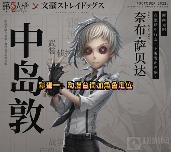 本次率先爆料的是“文豪野犬”动漫中的中岛敦,他将跟欧蒂利斯庄园中的求生者佣兵“奈布”携手共同演绎。