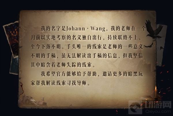 据悉,老师失踪前只留下一本充满未知谜题的手稿。手稿上的信息在他看来似乎与《暗黑破坏神》系列游戏息息相关。