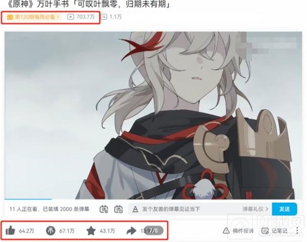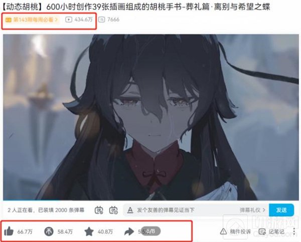 实际上,在原神内容更新的过程中,像《等风吟》和TS映画这样在手书/动画企划上优秀的作品和玩家并不少,许多作品都拥有很高的播放量,甚至一度出圈,成为原神玩家“卖安利”的必备二创。比如万叶在登场后不久就拥有了真爱厨的七百多万播放量的人物手书、胡桃因原神赋予的深刻人设引得玩家花费600小时创作39张高质量插画等等。