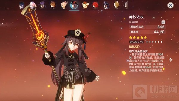 适配赤沙的角色当然还有“武器大师”香菱。高暴击率能让香菱双暴更高,精通转攻击力正好对上了香菱突破加精通的设计。但和胡桃一样用起来有一定的限制:叠层机制不太适合打速切和大招锁面板的香菱,一般情况下,先放锅巴喷一口最多叠个一层就要放大招了;并且没有特别标注的情况下,赤沙在后台应该是不能叠层的。其次,赤沙肉眼可见地增加了香菱的输出,但代价是香菱刚需的充能效率。在万达国际以及融甘阵容中,对香菱的充能效率要求相当高,所以个人推荐香菱要带赤沙的话最好是在雷神国家队里。