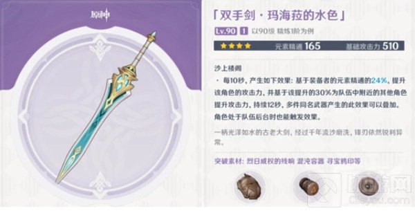 至于新双手剑,副词条为精通,特性是根据精通给自己和队友加攻击力,1000点精通能转化为240攻击力(1精)。目前来看除了六命早柚外没有特别适配的大剑,但精通作为须弥主打的属性,说不定它以后同样会有用武之地,并且胜在特性后台可触发以及能叠加。