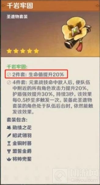 妮露的攻击与生命有关,因此我们要把妮露的生命给堆上来,圣遗物这块推荐用千岩牢固+沉沦之心,也就是2+2搭配,或者2件千岩牢固混搭其他也可以,毕竟套装那20%的生命加成对我们很重要。