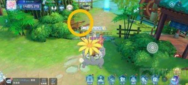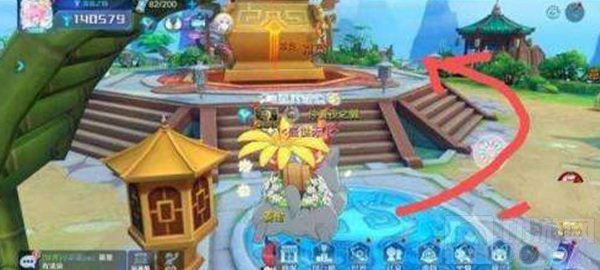 3、传送到金麦之心,往右前方的流水处走,如图箭头指示方向;