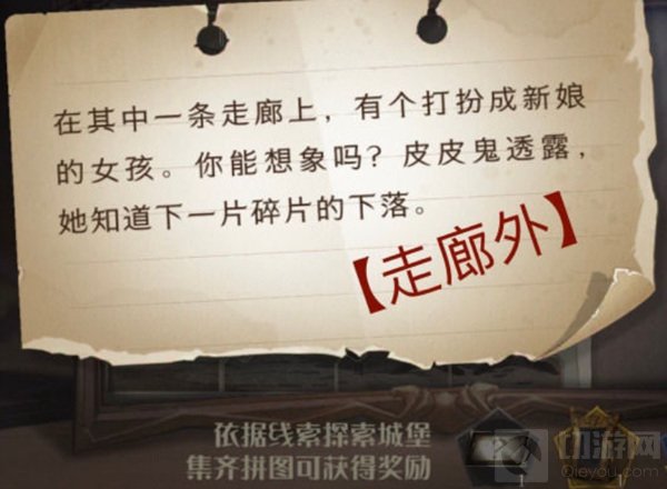 线索二:在其中一条走廊上,有个打扮成新娘的女孩。你能想象吗?皮皮鬼透露,她知道下一片碎片的下落。