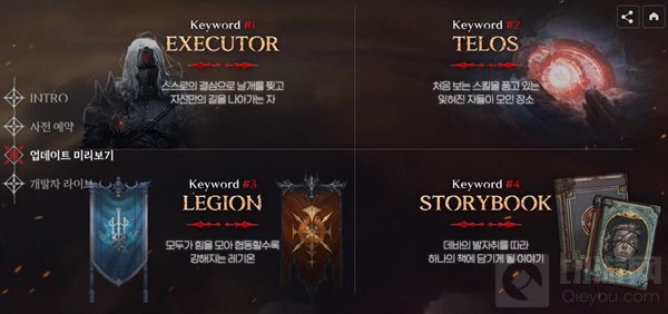 韩服《永恒之塔》怀旧服公开了可以猜到更新内容的四个关键词。分别是,“执行者”(EXECUTOR)、“泰勒斯”(TELOS),“军团”(LEGION),“剧情书”(STORY BOOK)等。