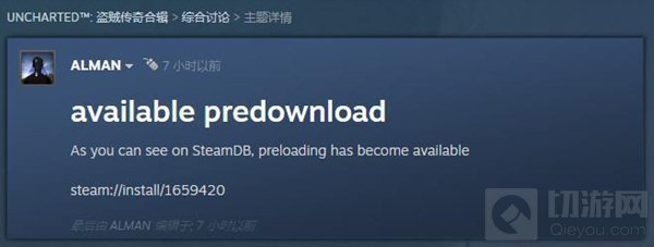 今日(10月18日),Steam商店用户“ALMAN”在《神秘海域:盗贼传奇合辑》社区讨论中表示该作预载现已开启,据配置要求显示,本作大小约为126GB。但目前Epic Game商店尚未开始预载。本作预计于10月19日上线,此外,本作现已针对Steam Deck平台进行全面优化。