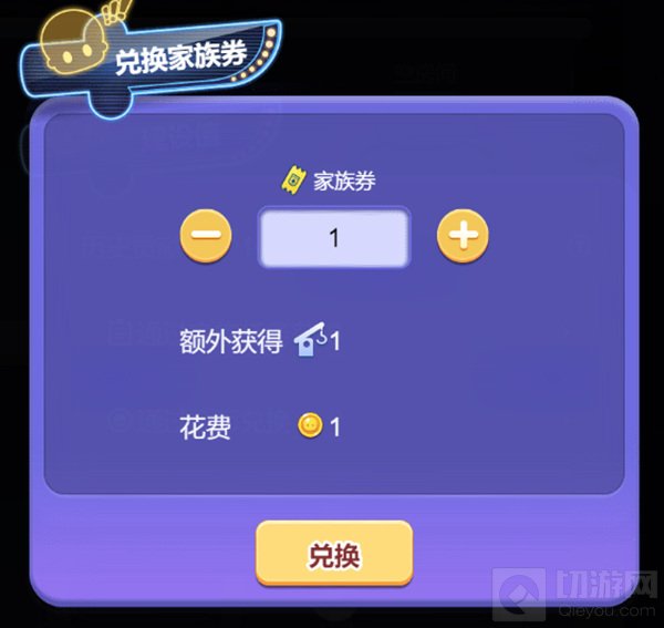 2、通过金币兑换,每花费1金币可兑换1家族券和1建设值