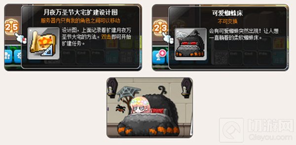 另外,在活动期间,参加万圣节家具收藏达到指定数量,获得夜月万圣节大宅扩建设计图奖励,还有可爱蜘蛛床等你兑换!