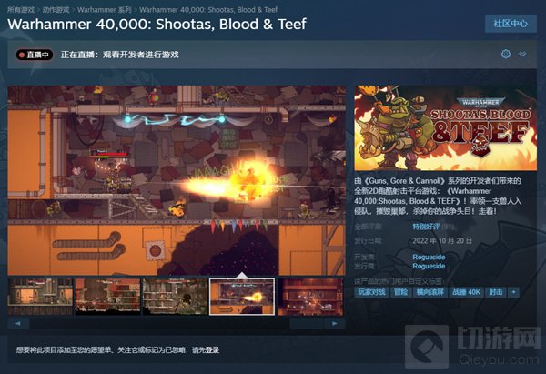 2D跑酷射击平台游戏《战锤40K:Shootas, Blood & TEEF》现已正式发售,游戏支持简体中文,国区原价78元,发售特惠70.2元,Steam综合评价“特别好评”。