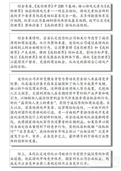 且根据《我的世界》最新公告所附上的终审判决书,广东省高级人民法院还指出了如下图要点: