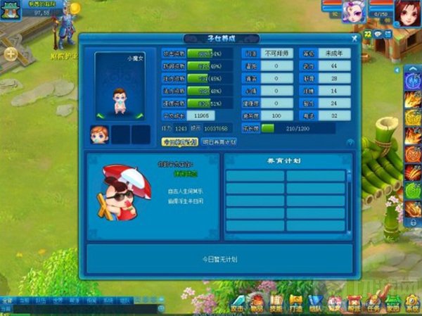 对于养孩子来说,最关键的就是培养阶段了。你不仅要保证孩子的营养,不能让孩子饿着影响发育,还需要对孩子的各项能力进行教导,增加他的武力、筋骨、体魄、智力和身法,从而提升他的各项资质。