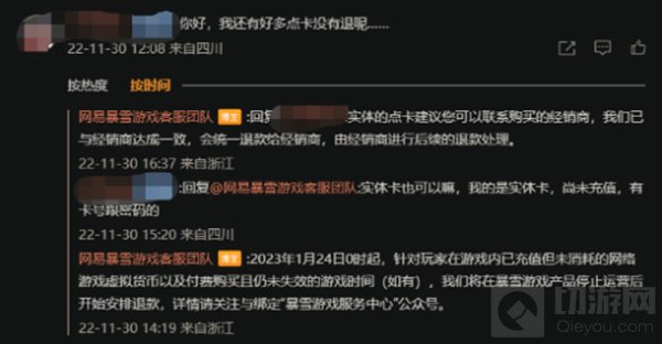而关于实体点卡,网易暴雪游戏客服团队表示玩家可以联系购买的经销商,网易暴雪已经与经销商达成一致,会统一退款给经销商,由经销商进行后续的退款处理。
