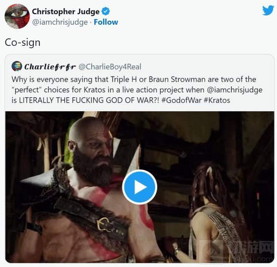 索尼此前有计划将《战神》等游戏搬上大荧幕,可以预见奎爷的真人版形象将于我们见面。而奎托斯的配音演员克里斯托弗·贾奇希望自己能担任这个角色,他转发了一篇粉丝推荐自己的推文,并留言:十分赞同。
