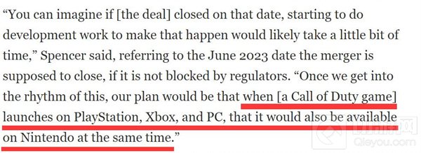 为了能成功收购动视暴雪,微软方面一直在做各种努力。最近Xbox老大菲尔·斯宾塞对外媒透露:假如收购成功,他们计划让《使命召唤》游戏“在登陆PS、Xbox、PC的同时登陆任天堂平台”。