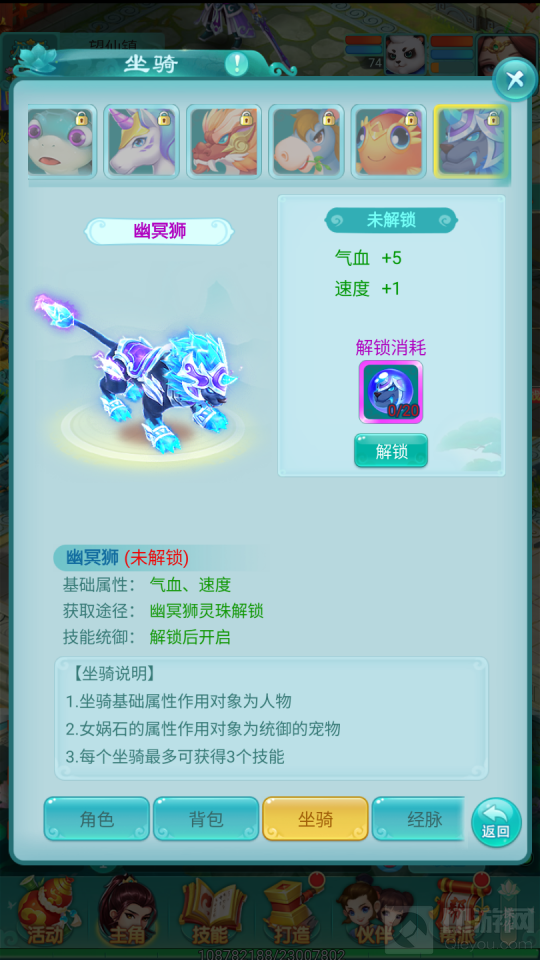 幽冥狮在功能上和其他坐骑类似,但比较卓越的就是它可以增加气血和速度两种属性,这是目前其他任何坐骑都办不到的。气血和速度都很重要,可以说大部分门派都适配这个坐骑,那么该如何获得幽冥狮呢?