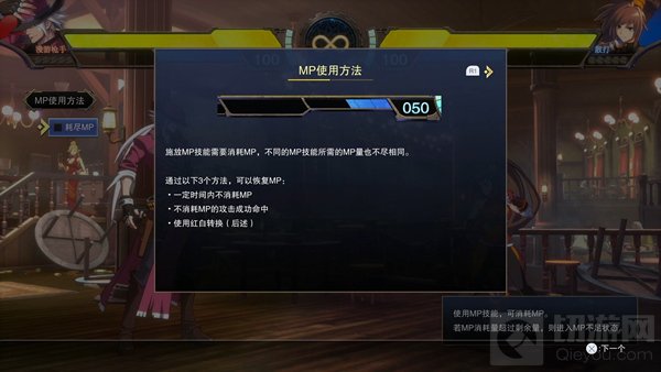本作在战斗方式上的最大特点,就是自身的MP系统,以往格斗游戏的技能核心都是围绕着能量,也就是俗称的“气”进行的,一般玩家需要造成或受到一定伤害来积攒能量,从而释放技能。但在本作当中则是围绕着MP进行的,这个体系最大的特点就是MP可以自动恢复,即便频繁释放技能导致MP清空,也可以龟缩起来等待MP自动回满,这让本作的战斗节奏与其他同类型游戏有着相当程度的区别,例如可以女枪炮师就可以不断进行火力压制,等蓝量恢复后释放技能打输出,接着继续火力压制达到消耗战的目的。
