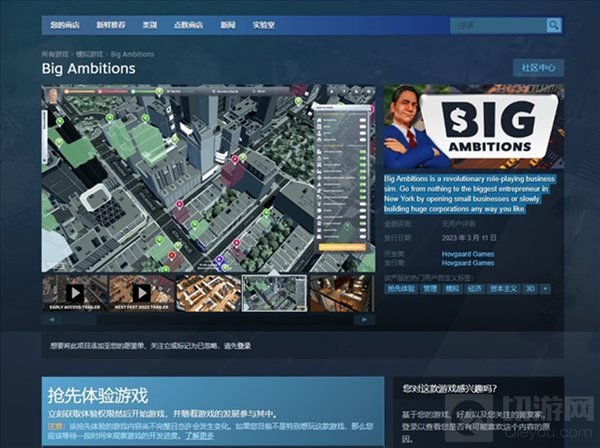 《雄心壮志(Big Ambitions)》是一款商业模拟游戏,起初玩家仅是大城市中的普通小孩,但凭借自己对金钱和成功的渴望,逐渐开始了经商之路,一步步向纽约最大的企业家迈进。游戏目前已上架Steam,预计3月11日开启抢先体验,支持简体中文。