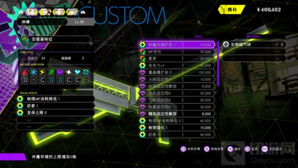 另一方面《灵魂骇客2》在属性上有着更高的可操作度,因为他的仲魔系统被整合到了装备当中,这意味着主角团的四个角色都可以随意更改自己的仲魔,搭配和培养会更加的顺手。