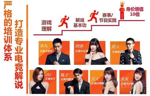 腾讯电竞在移动电竞时代下加大了造星投入,成立专项团队,联动产业上游多家经纪公司输送人才,联动专业机构进行系统培训,在解说能力项及游戏专业项等方面进行提升,并通过频密的赛事实践提高各方面能力。