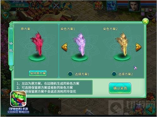 《梦想世界》手游全新宠物染色功能亮相,从即日起,侠士们可以到中州城(20,43)找到染色师即可进行宠物染色。当然,与角色染色一样,为心爱的宠物换上新装也需要消耗一定的材料,并且消耗的数量会随着物携带等级而变化。而确定染色后将会出现2种宠物染色方案供侠士们选择,诸位侠士赶紧带上自己心爱的宠物,在染色使处为它染上独一无二的颜色吧!