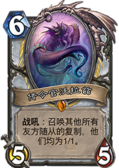 其实说到1/1的复制体,很容易让人想到古神版本公布的牧师橙卡传令官和盗贼的职业随从暗影施法者,但是这两者的问题都是要复制场上的随从,也就是说要有随从占场才能最大的发挥效果(盗贼还好,可以通过暗影步和隐藏等黑科技,但是牧师那个随从高达6费就真的很蛋疼了)。