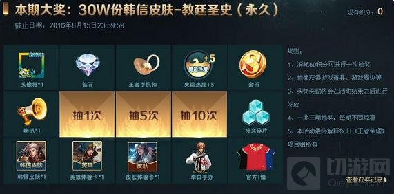 王者荣耀冠军杯暑期盛典本期“积分冲冲冲”抽奖活动8月1日0:00-1:00由于数据更新未能开放而显示活动结束,如图。给您带来的不便,我们深表歉意。经过更新,现已正常开放抽奖,玩家可以使用奥运积分抽取奖励哦!