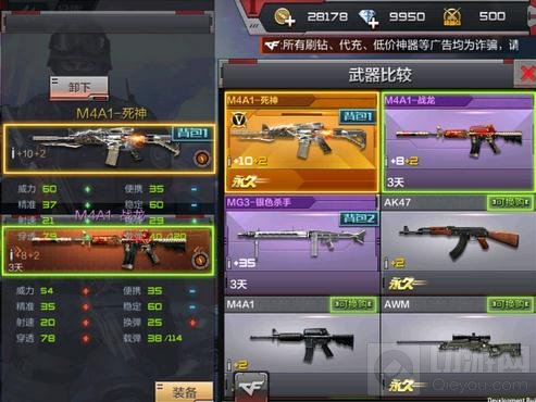 从图中的对比我们可以看出M4A1-死神在各项数据方面都远远超过了其他M4,可谓是M4枪械中的王者,你指的拥有。