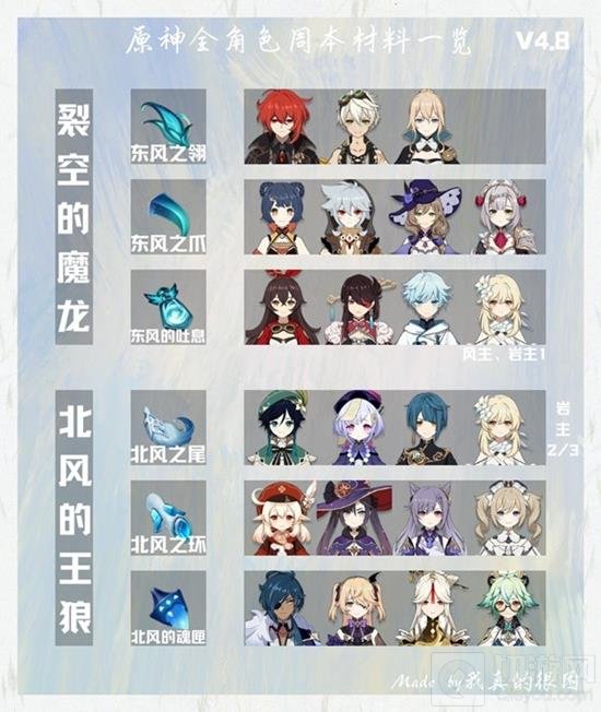 在《原神》4.8版本中,全角色的周本材料需求系统是一个复杂且多样化的机制。这些材料主要用于角色天赋的突破升级,并且每个角色根据其元素属性和星级,《原神》4.8角色材料各不相同。周本材料主要通过挑战每周的周常BOSS获得,每个BOSS会随机掉落三种对应的专属素材。当角色的天赋提升到6级以上时,就需要提供相应的《原神》4.8角色周本材料。下面汇总了由攻略作者“我真的好困t”为大家带来的《原神》4.8版全角色周本材料需求汇总,希望可以帮助到大家。