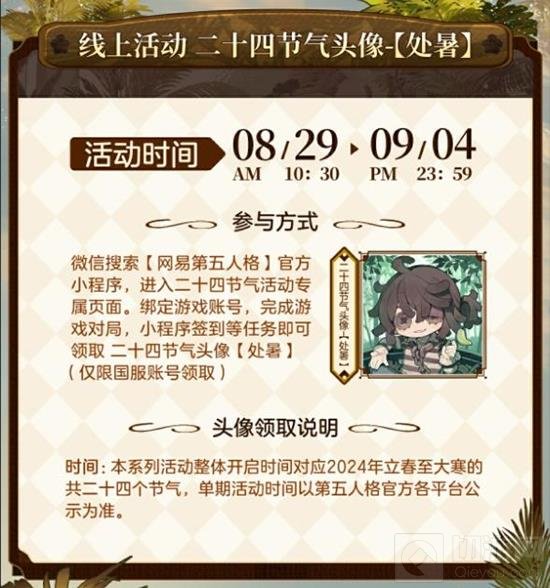 集齐四枚印章并满足游戏内对战局数要求,可兑换二十四节气头像-处暑兑换卡。