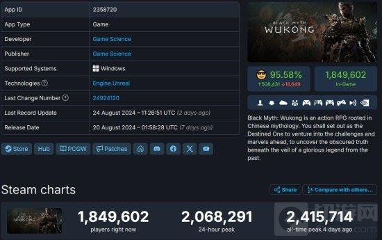 然而,随着时间的推移,游戏的热度逐渐有所下降。根据SteamDB的数据,虽然《黑神话》的最高在线人数纪录仍然是4天前创下的241.5万,但这个数字与《绝地求生》在2017年创下的320万的记录相比,仍有一段距离。尽管如此,作为国产首部3A大作,《黑神话》所取得的成绩已经足以让国内主机玩家感到自豪。