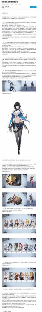 调整内容:涉及到的部分角色设计和时装将进行调整,或者可能面临无限期下架的处理。